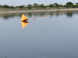 スイムのコースとスタート。見た目は綺麗です。(しつこい)コースロープが張っており、泳ぎやすそうです。
